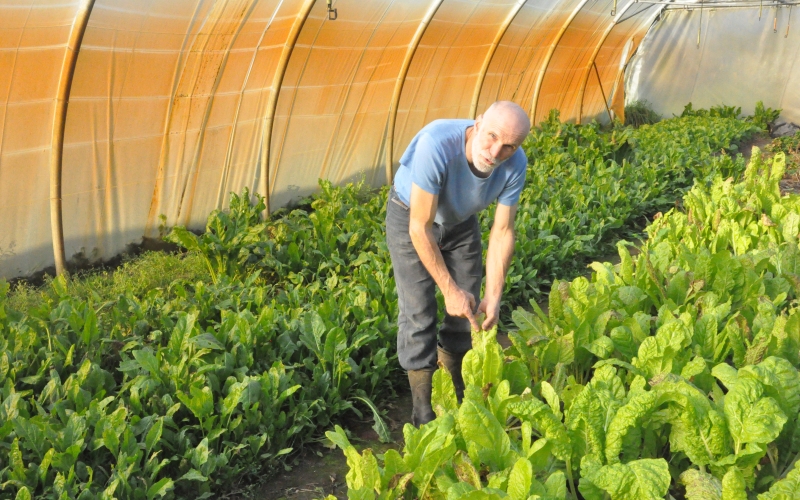 Je suis certifié "bio" depuis 2006 . Je produis environ 40 variétés de fruits et légumes. L'essentiel de ma production est pour l'AMAP : 53 paniers /semaines, et je fournis aussi en complément les cantines des écoles maternelles de Chevaigné et St Sulpice, qui sont proches de chez moi. Mon chiffre d'affaires mensuel est d'environ 2400€ , ce qui fait une revenu net de 1200€.